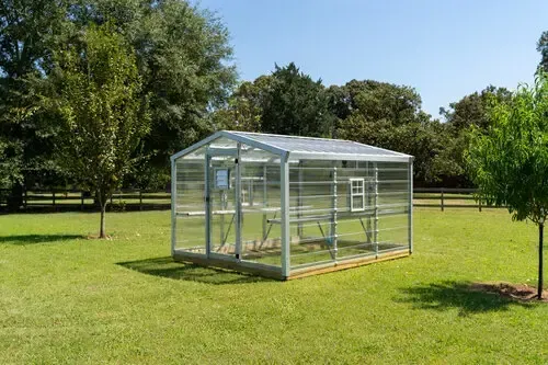The base model is an 8 × 10 Economy Portable Greenhouse. But our greenhouses can be built up to 10 × 16. If you need a custom size, we’ve got you covered — just contact us.